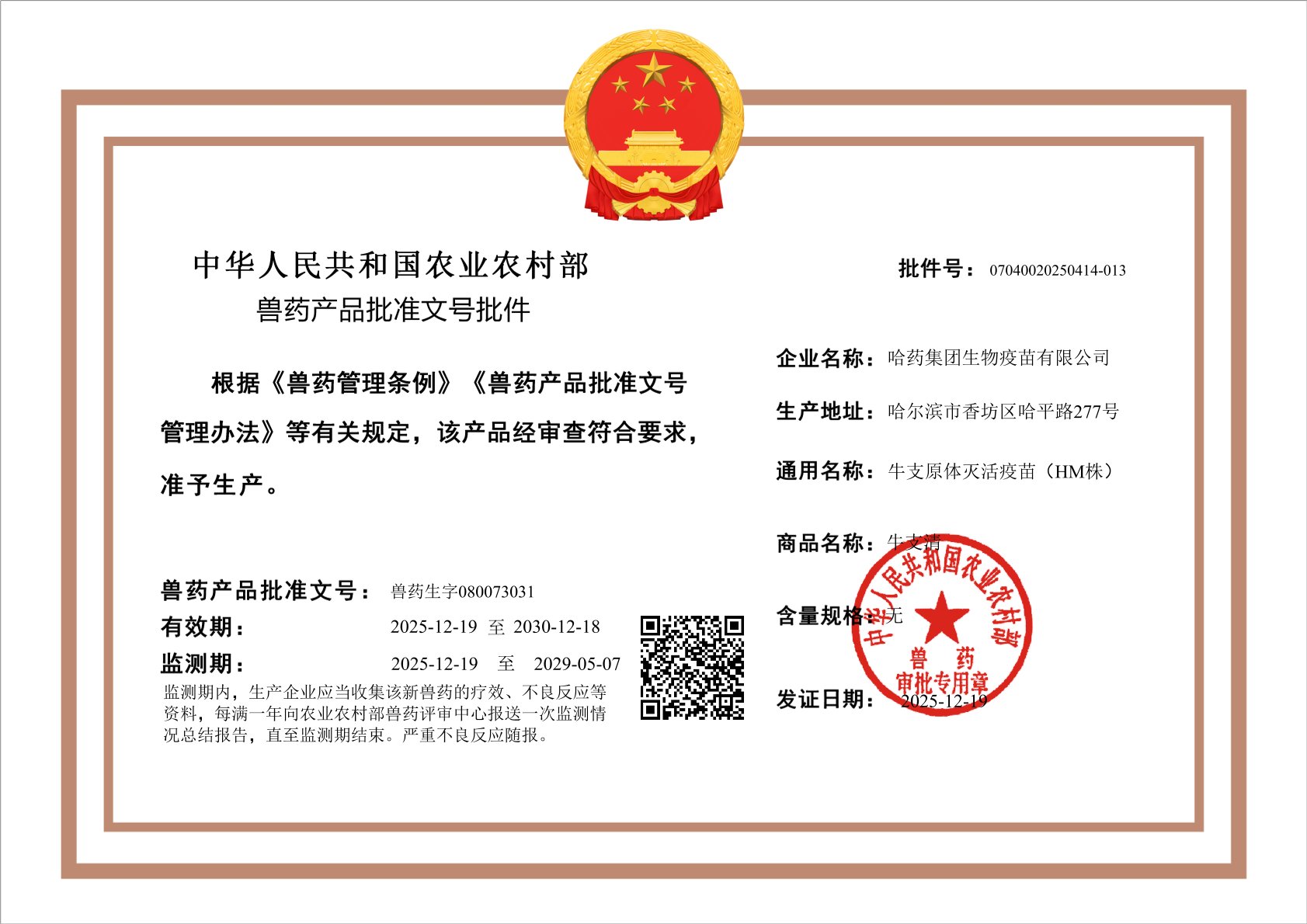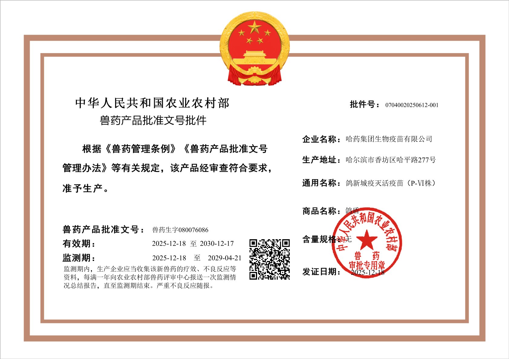 喜报!哈药集团生物疫苗有限公司获新批文。
